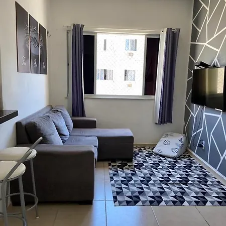 The 1-room Aluguel Por Diaria Ap Da Maria Apartment includes a terrace and is located within 6 km of Praca Dos Stressados Fitness Center. Guests can take a dip in a swimming pool to relax after a long day.